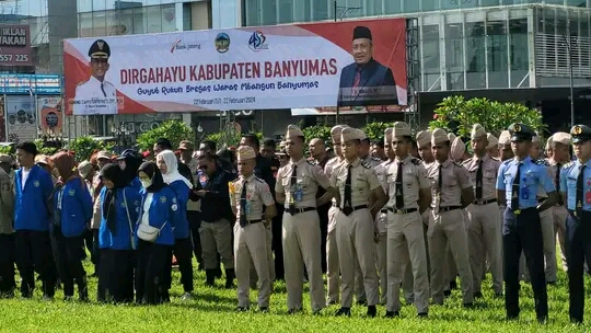 TEROPONG INDONESIA-, Pj Hanung Cahyo Saputro untuk pertama kalinya memimpin upacara Hari Jadi Kabupaten Banyumas pada Kamis (22/2/24) pagi di Alun-Alun Purwokerto. Peringatan ke-453 kali ini mengangkat tema “Guyub Rukun Bregas Waras Mbangun Banyumas”