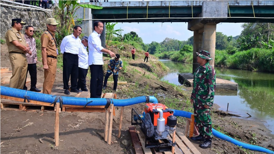 (TEROPONG INDONESIA)-, Presiden Joko Widodo meninjau pelaksanaan pemberian bantuan pompa air untuk pengairan sawah dan pertanian atau pompanisasi di Provinsi Jawa Tengah pada Rabu, 19 Juni 2024. Dalam keterangannya di Desa Krendowahono, Kecamatan Gondang Rejo, Kabupaten Karanganyar, Presiden menyebut bahwa pompanisasi ini bagian dari upaya pemerintah untuk mengatasi potensi kekeringan yang diperkirakan akan terjadi dalam beberapa bulan ke depan.