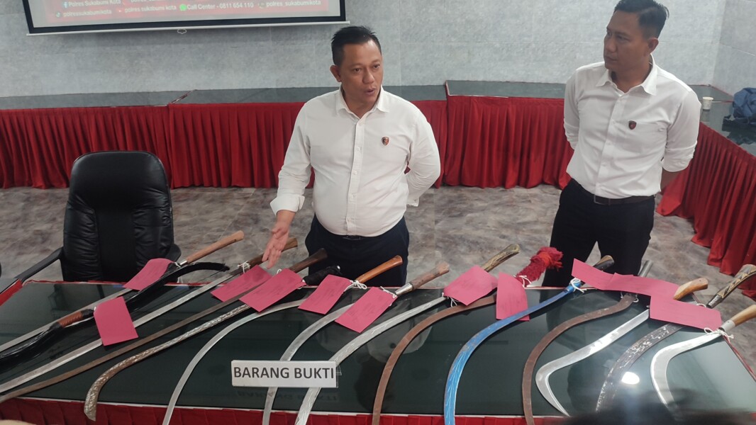 “Kami juga berhasil mengamankan barang bukti berupa 25 unit senjata tajam berbagai jenis yang disembunyikan disebuah gudang, 9 unit sepeda motor serta 3 unit Hp,” ungkap Kapolres Sukabumi Kota, AKBP Rita Suwandi, Senin (02/09/2024), di Mapolres Sukabumi Kota.