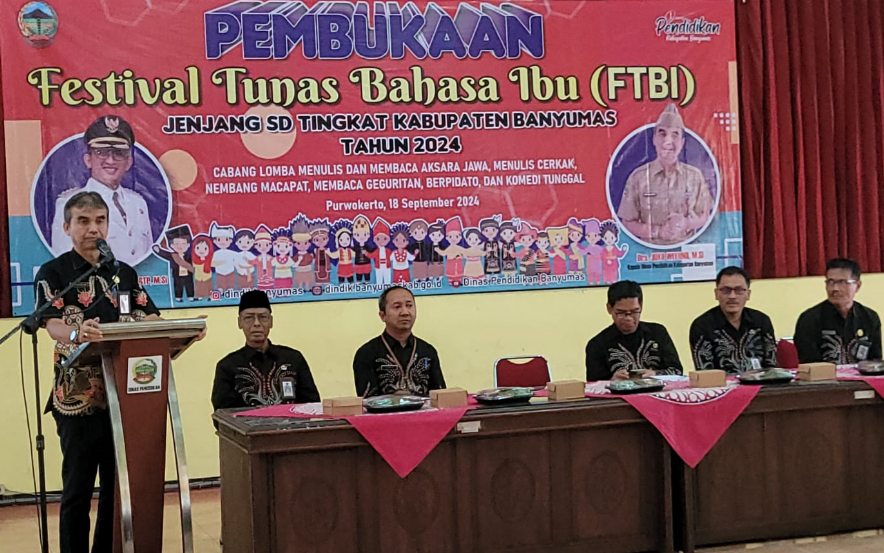 (TEROPONG INDONESIA)-, Sebagai wujud nyata pelindungan dan pelestarian bahasa daerah khususnya Bahasa Jawa, Dinas Pendidikan Kabupaten Banyumas kembali menggelar Festival Tunas Bahasa Ibu untuk jenjang SD Tingkat Kabupaten Banyumas. Acara yang diselenggarakan pada Rabu-Kamis tanggal 18—19 September 2024 di sekitar kantor Dinas Pendidikan.
