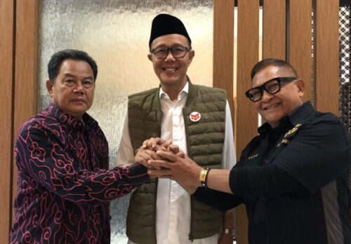 TEROPONG INDONESIA, KOTA SUKABUMI – Ketua DPD dan Sekretaris Partai Golkar Kota Sukabumi, Sri Widagdo dan Hasen S Chandra manyambangi Calon Walikota Sukabumi terpilih untuk mengucapkan selamat atas raihan suara terbanyak pada Pilkada Kota Sukabumi 2024, sekaligus menyampaikan dukungan penuh terhadap Pemerintahan Kota Sukabumi yang akan dipimpin oleh Ayep Zaki dan Bobby Maulana dalam kurun waktu 5 (lima) Tahun kedepan.