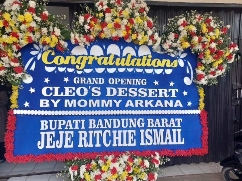 Perlu diketahui ternyata, Bupati Jeje Ritchie Ismail juga kirim karangan bunga ucapan grand opening Cleo’s Dessert dan ucapan selamat.. dan semoga sukses..!!!