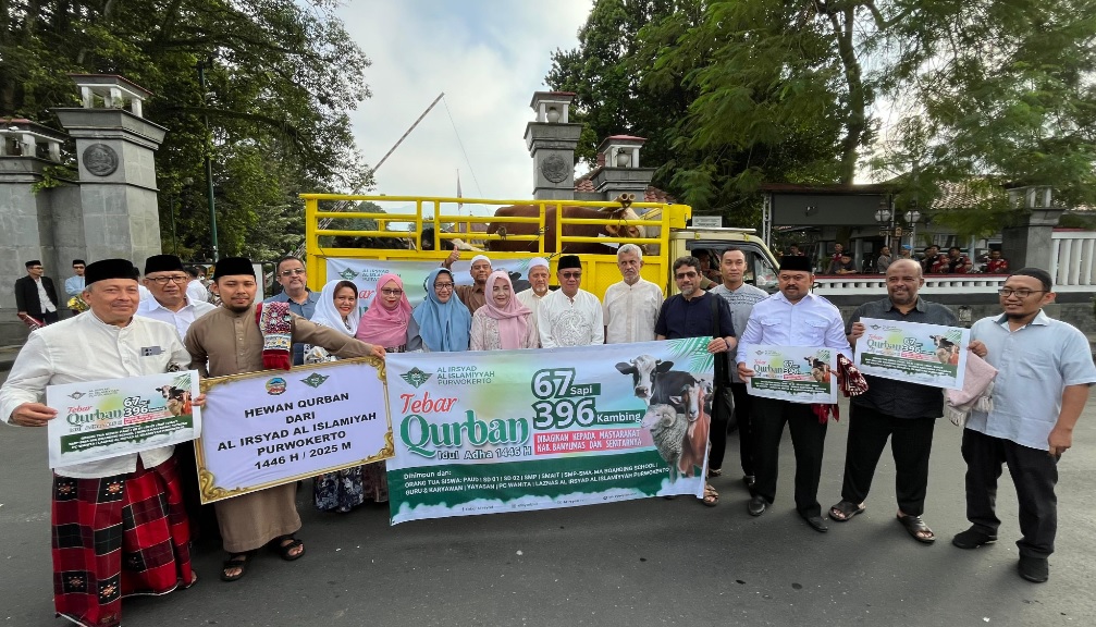 Usai Sholat Id dilaksanakan penyerahan beberapa hewan kurban secara simbolis diantaranya dari Bank Jateng Cabang Purwokerto, BPR BKK Purwokerto, PDAM Tirta Satria, Baznas Banyumas, Al Irsyad Islamiyah Purwokerto dan lainya.