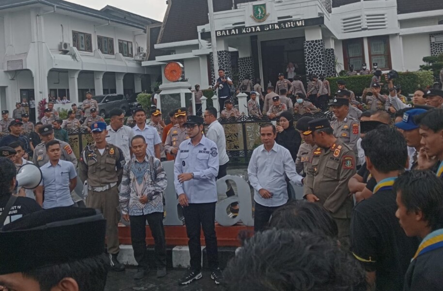 Teropong Indonesia, KOTA SUKABUMI – Wakil Wali Kota Sukabumi, Bobby Maulana, turun langsung menemui massa aksi unjuk rasa yang tergabung dalam Pergerakan Mahasiswa Islam Indonesia (PMII) di depan Balai Kota Sukabumi, Rabu (11/6/2025).