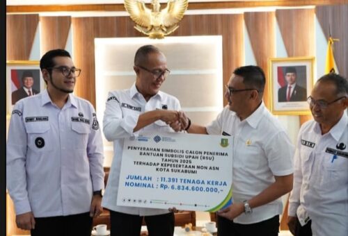 Teropong Indonesia, KOTA SUKABUMI – Pemerintah Kota Sukabumi secara resmi menerima Bantuan Subsidi Upah (BSU) dari BPJS Ketenagakerjaan bagi 11.361 pekerja Non ASN di lingkungan Pemkot Sukabumi.
