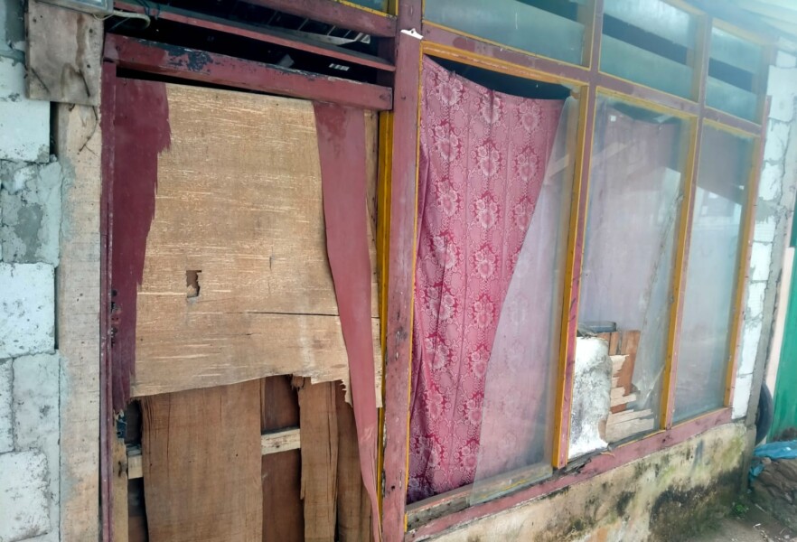 Pantauan dilokasi, kondisi bangunan sangat memprihatinkan, dimana atap rumah roboh dan kaca bagian depan rumah pun pecah. Karena kondisinya tersebut, setiap kali hujan turun, air kerap menggenangi bagian dalam rumah hingga menyebabkan banjir kecil di dalam hunian tersebut.