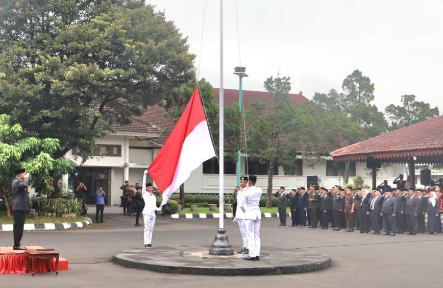 Bupati Banyumas, Sadewo Tri Lastiono bertindak sebagai inspektur upacara dengan peserta dari unsur Forkompimda, ASN, TNI, Polri, orgnisasi masyarakat serta perwakilan siswa sekolah Kabupaten Banyumas.