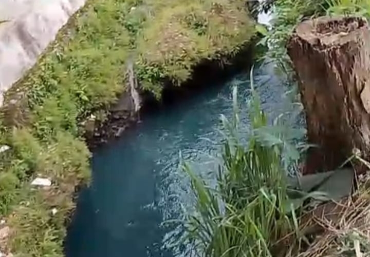 “Kami belum tahu asal perubahan warna air ini dari mana. Warga menyaksikan langsung air sungai tiba-tiba berubah menjadi biru,” ujar Suherman.