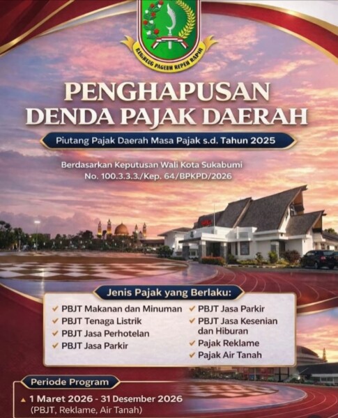 Teropong Indonesia, KOTA SUKABUMI – Kabar gembira bagi masyarakat Kota Sukabumi. Pemerintah Kota Sukabumi resmi memberikan keringanan berupa penghapusan denda administratif untuk piutang pajak daerah hingga masa pajak tahun 2025.