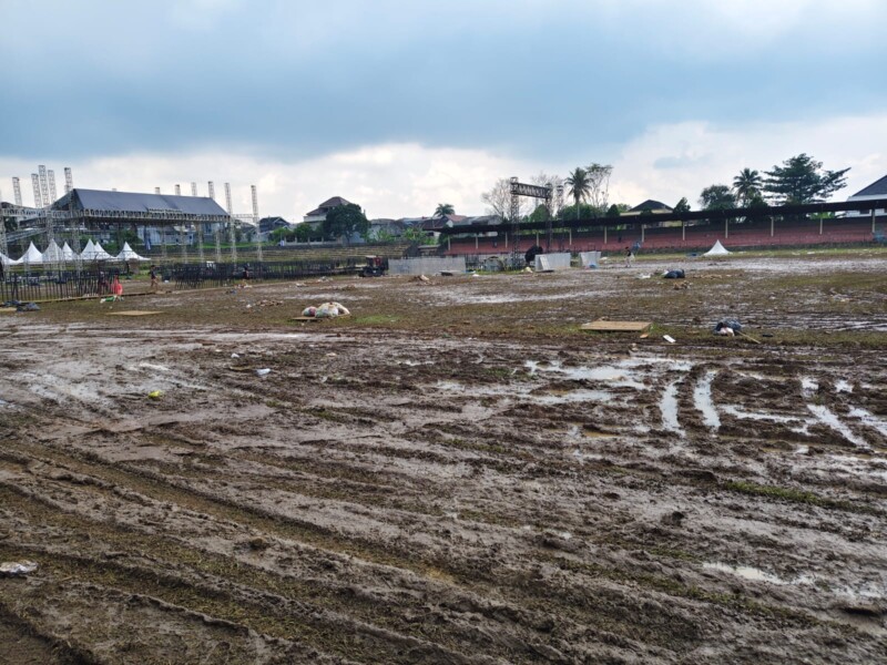 Teropong Indonesia, KOTA SUKABUMI – Gelaran festival musik di Stadion Suryakencana Kota Sukabumi menyisakan pemandangan memprihatinkan. Stadion kebanggaan warga Sukabumi tersebut viral di media sosial setelah kondisi lapangannya tampak rusak, berlumpur, dan dipenuhi sampah pasca-konser yang digelar di tengah guyuran hujan.
