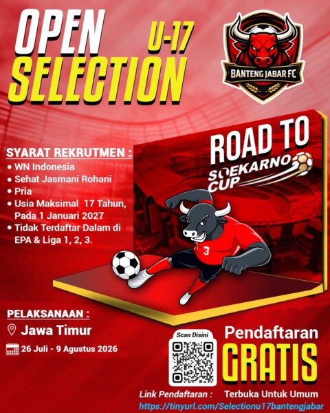 Yuk ikuti Open Selection U-17 Road to Soekarno Cup yang resmi dibuka untuk kamu para pemain muda berbakat!