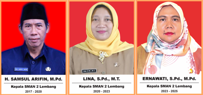 Sejak tahun 2020, Lina, S.Pd., M.T., resmi ditugaskan oleh Dinas Pendidikan Provinsi Jawa Barat menjadi Kepala SMAN 2 Lembang Bandung Barat. Pada tahun 2023 berpindah tugas ke SMAN 1 Padalarang.
